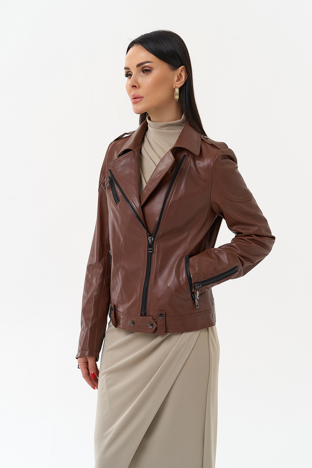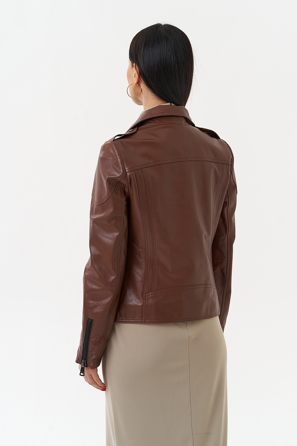 Куртка из натуральной кожи насыщенного коричневого цвета